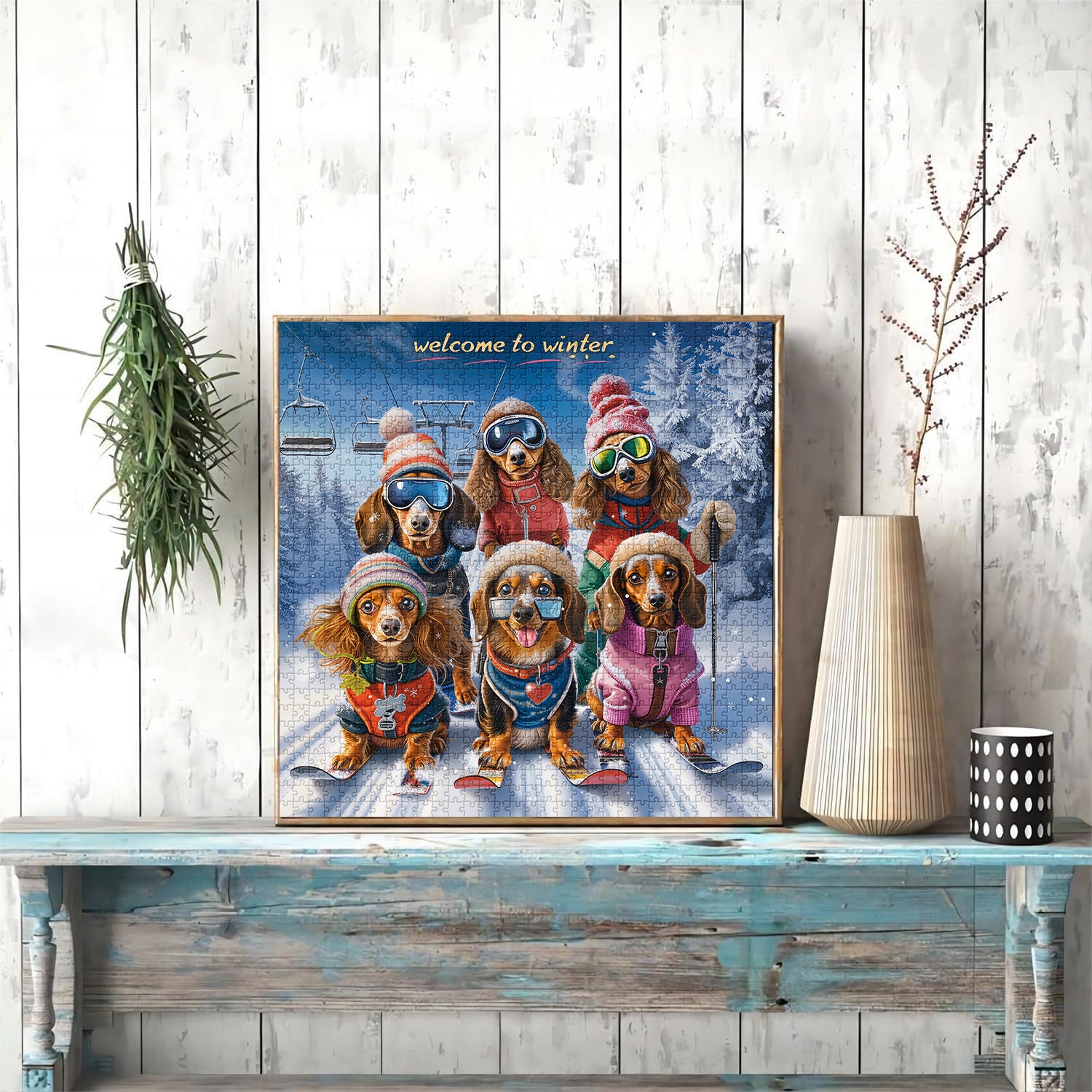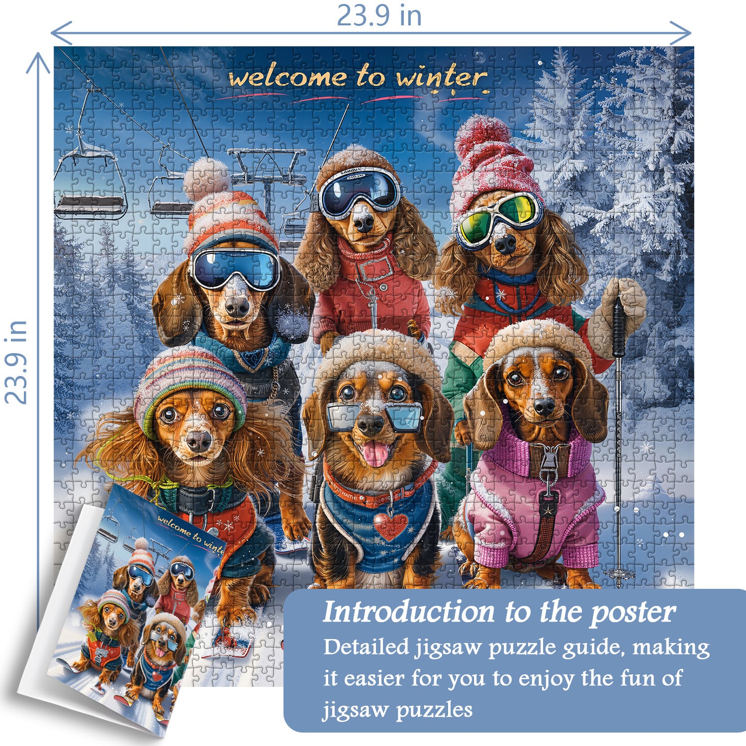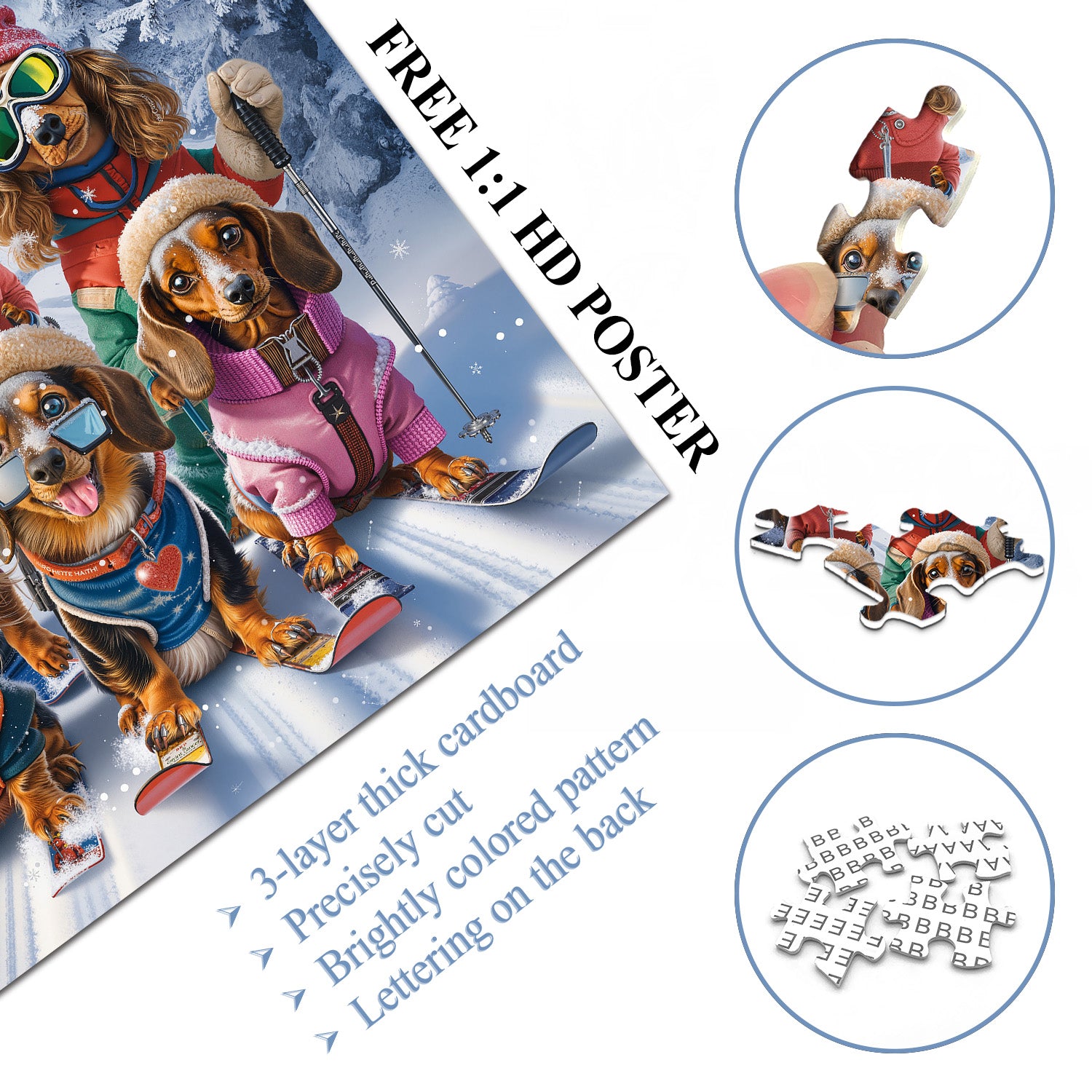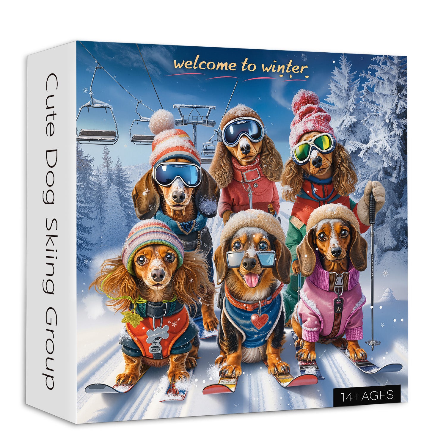 Cute Dog Skiing Group Jigsaw Puzzle 1000 Pieces