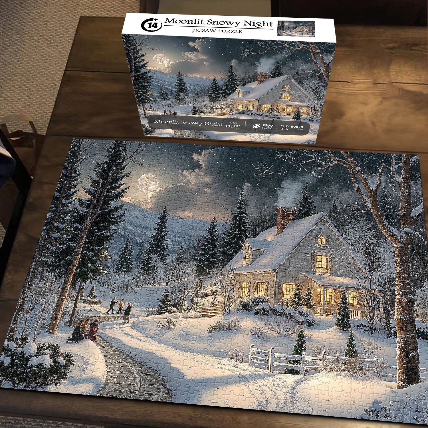 1 * Moonlit Snowy Night Jigsaw Puzzle 1000 Pieces