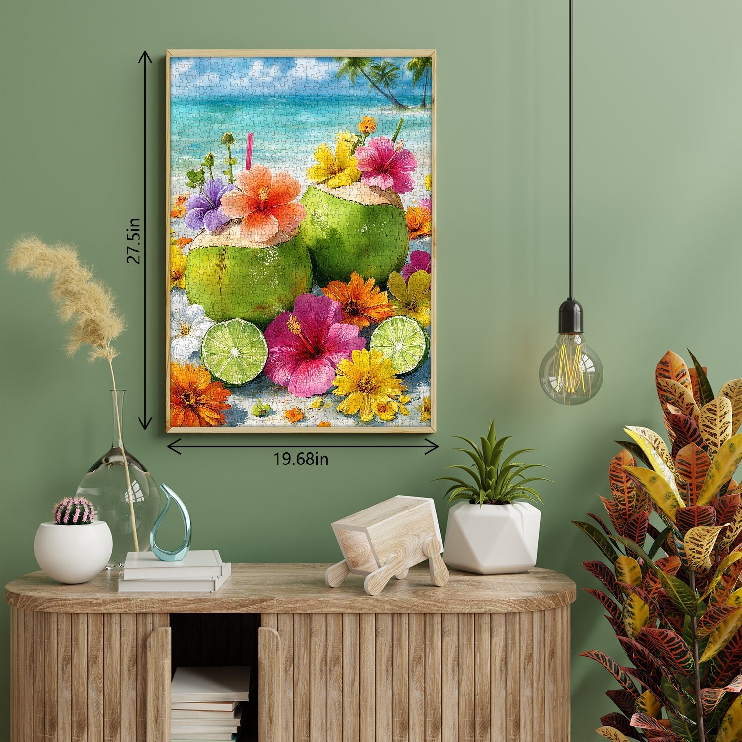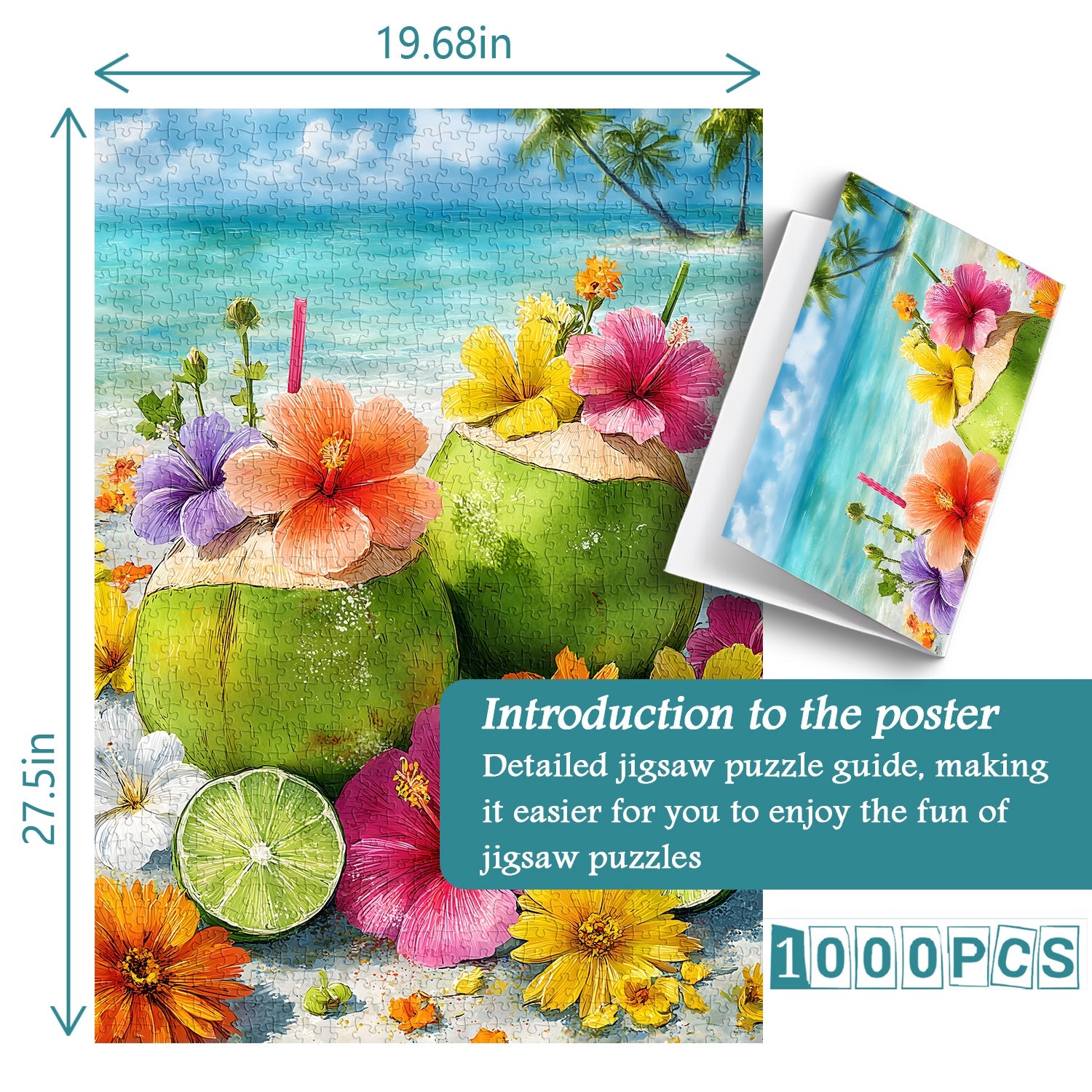 Specifications & Utility: A 1000-piece jigsaw puzzle (50 x 70 cm finished size) suitable for ages 14+; its bright, cheerful palette and vacation-themed design make it ideal for post-puzzle display (e.g., framed as a summery wall accent) or gifting to tropical lifestyle enthusiasts.