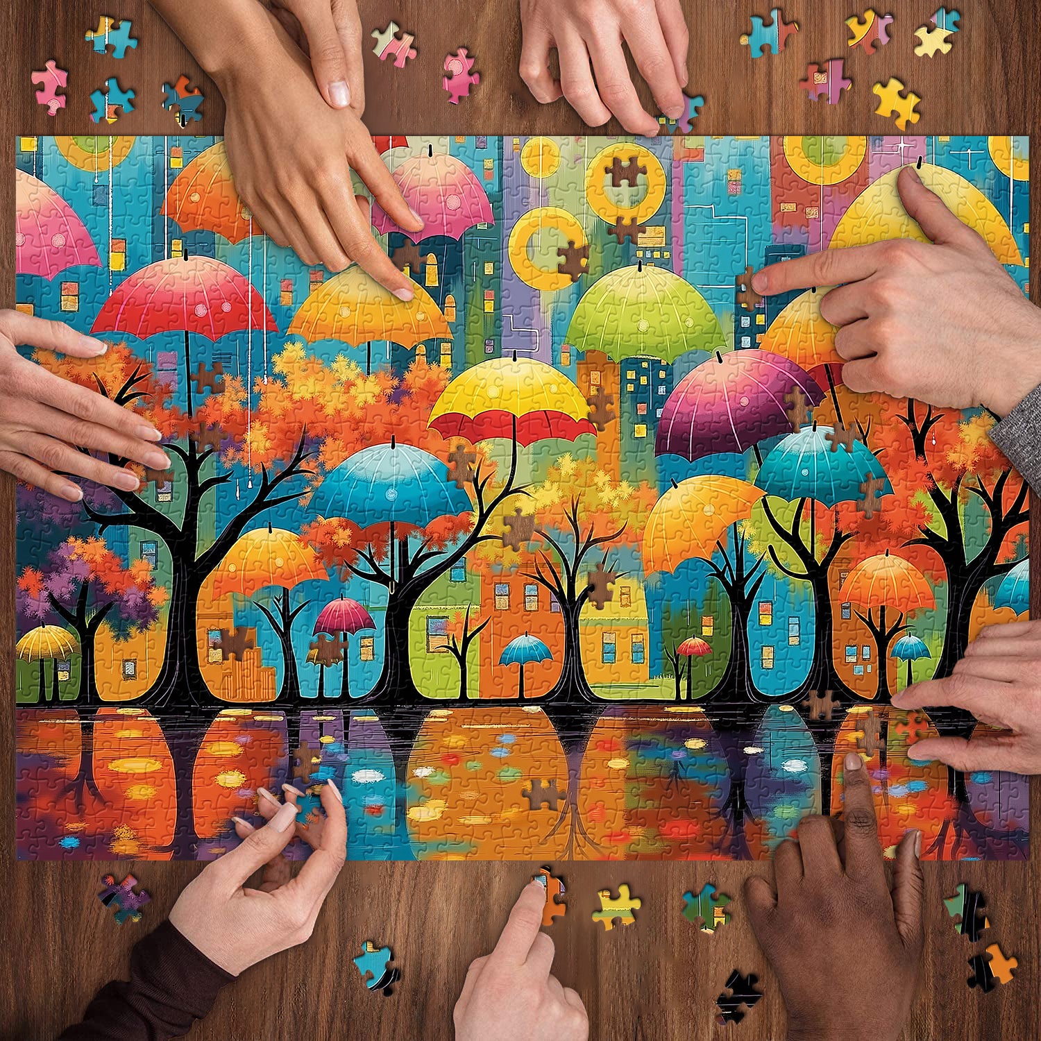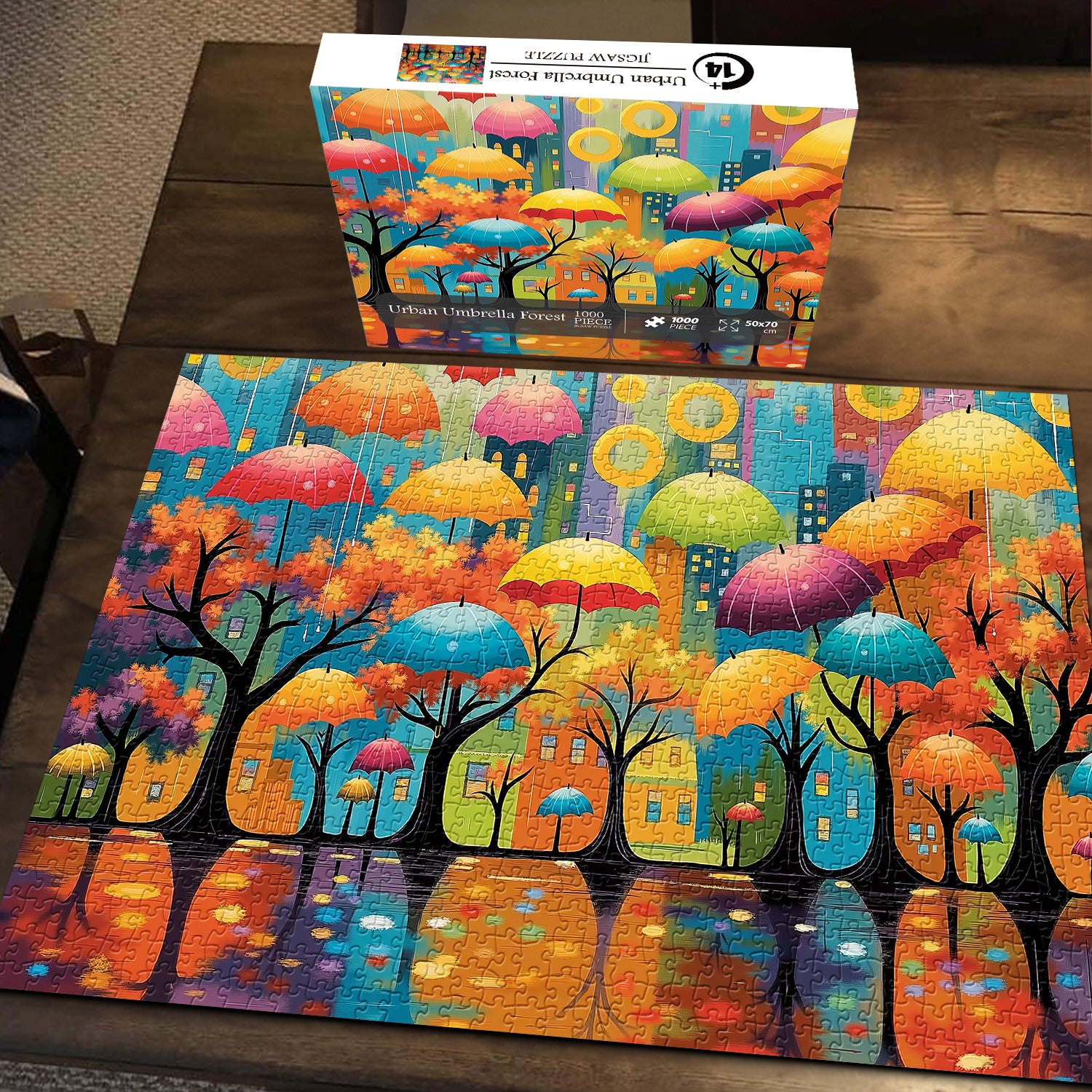 1 rompecabezas urbano de bosque paraguas de 1000 piezas.