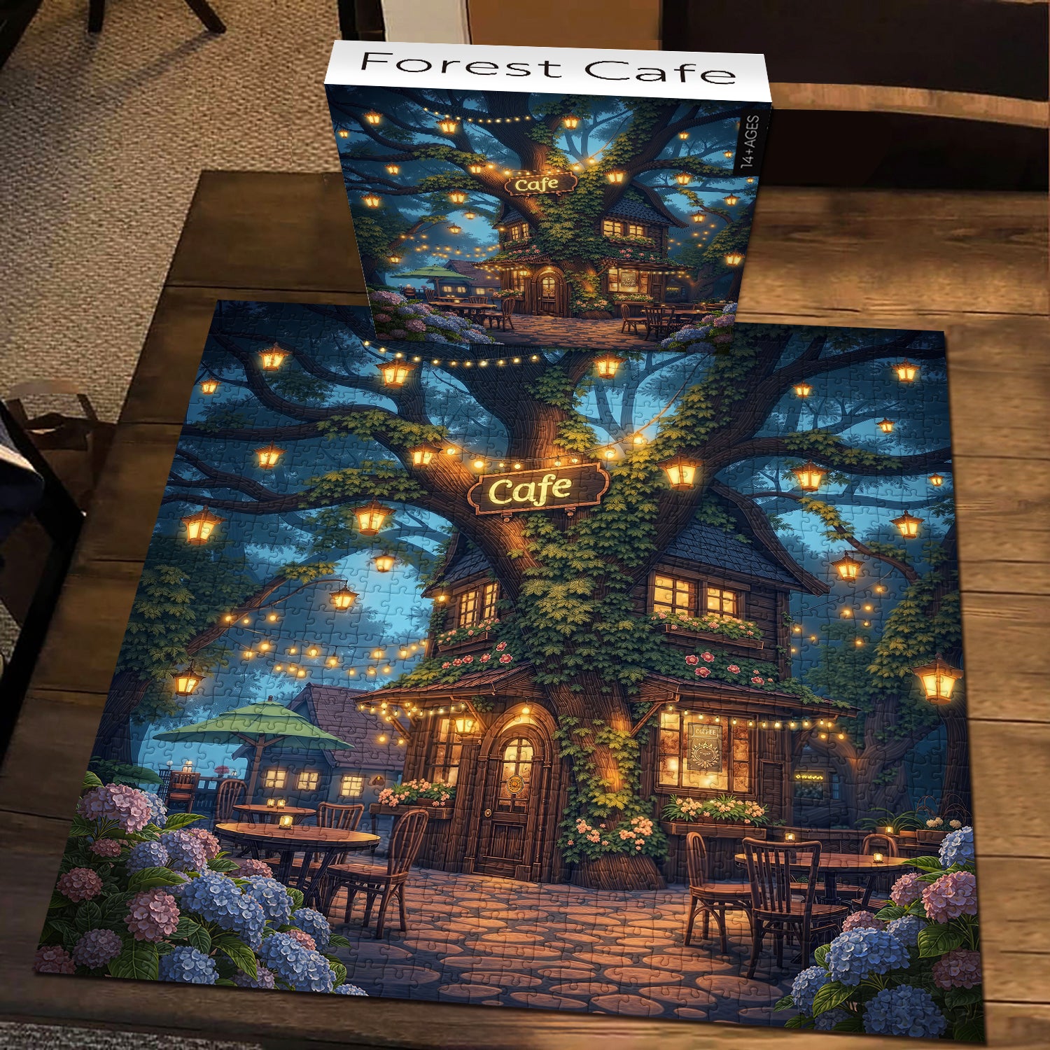 ☕🏡Acogedor café del bosque: Una pequeña cabaña de madera se transforma en una encantadora cafetería, rodeada de espesas enredaderas y árboles centenarios, que combina la arquitectura rústica con una exuberante vegetación.