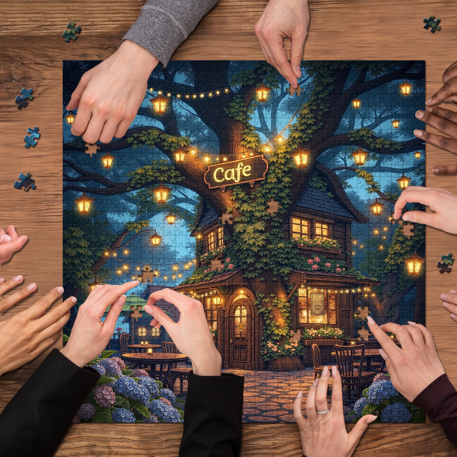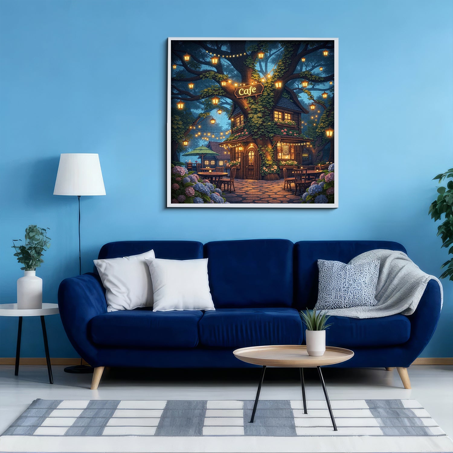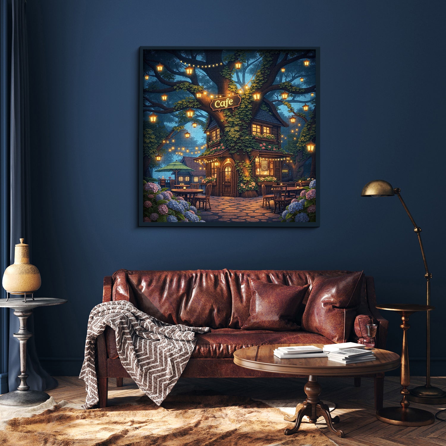🌳Serenidad de cuento de hadas: La escena general fusiona la belleza natural con la calidez humana, evocando un escondite tranquilo y mágico, perfecto para relajarse en la tranquilidad de la noche.