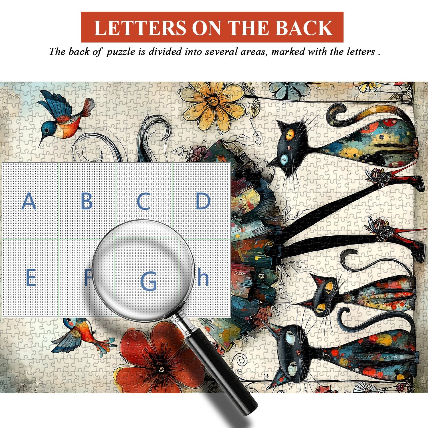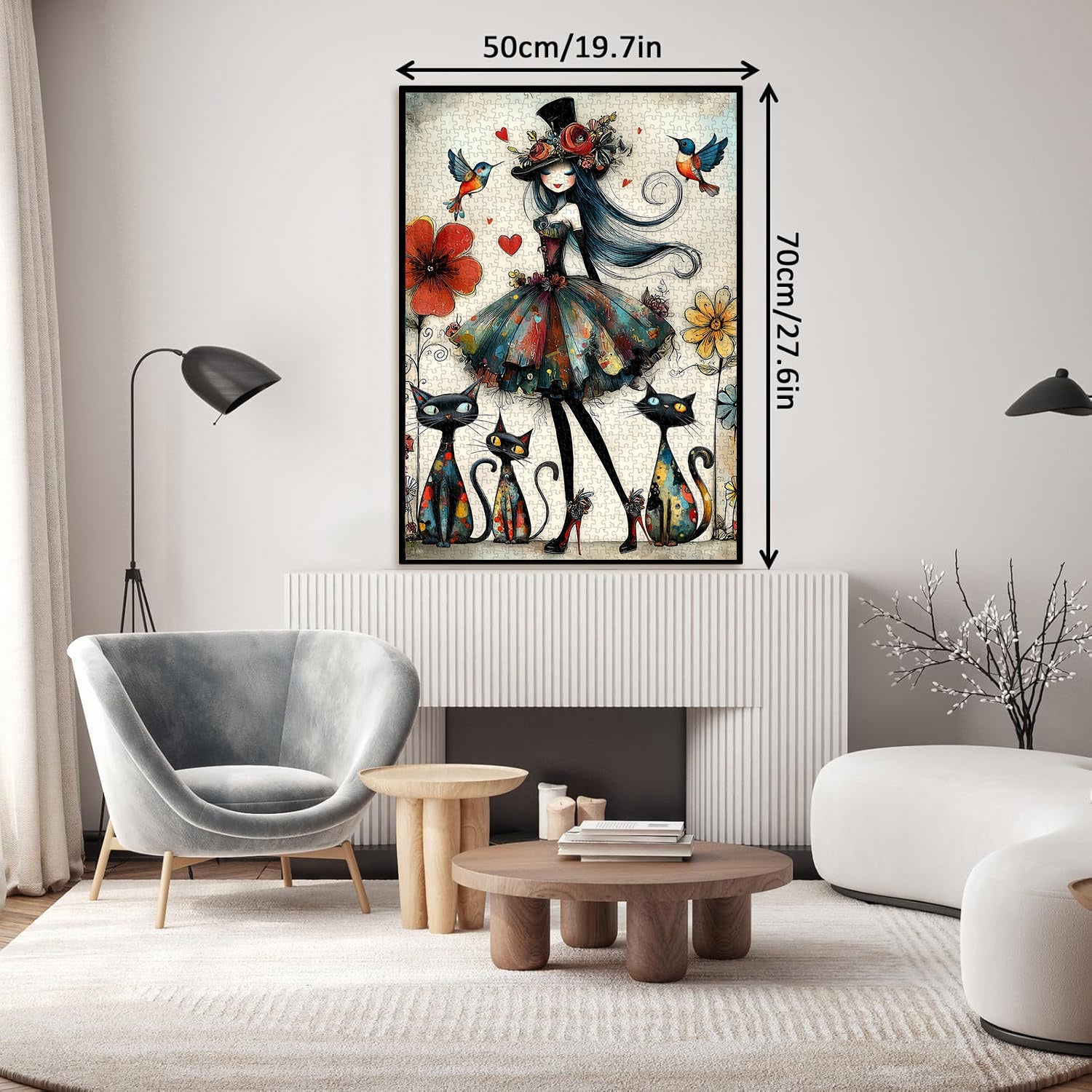 Décoration idéale et cadeau attentionné. Mesurant généreusement 50 x 70 cm une fois terminé, ce puzzle se transforme en une superbe pièce murale qui ajoute une touche de fantaisie à n'importe quel espace, ce qui en fait un cadeau parfait et visuellement impressionnant pour les amateurs d'art, les passionnés de chats et les collectionneurs de puzzles.