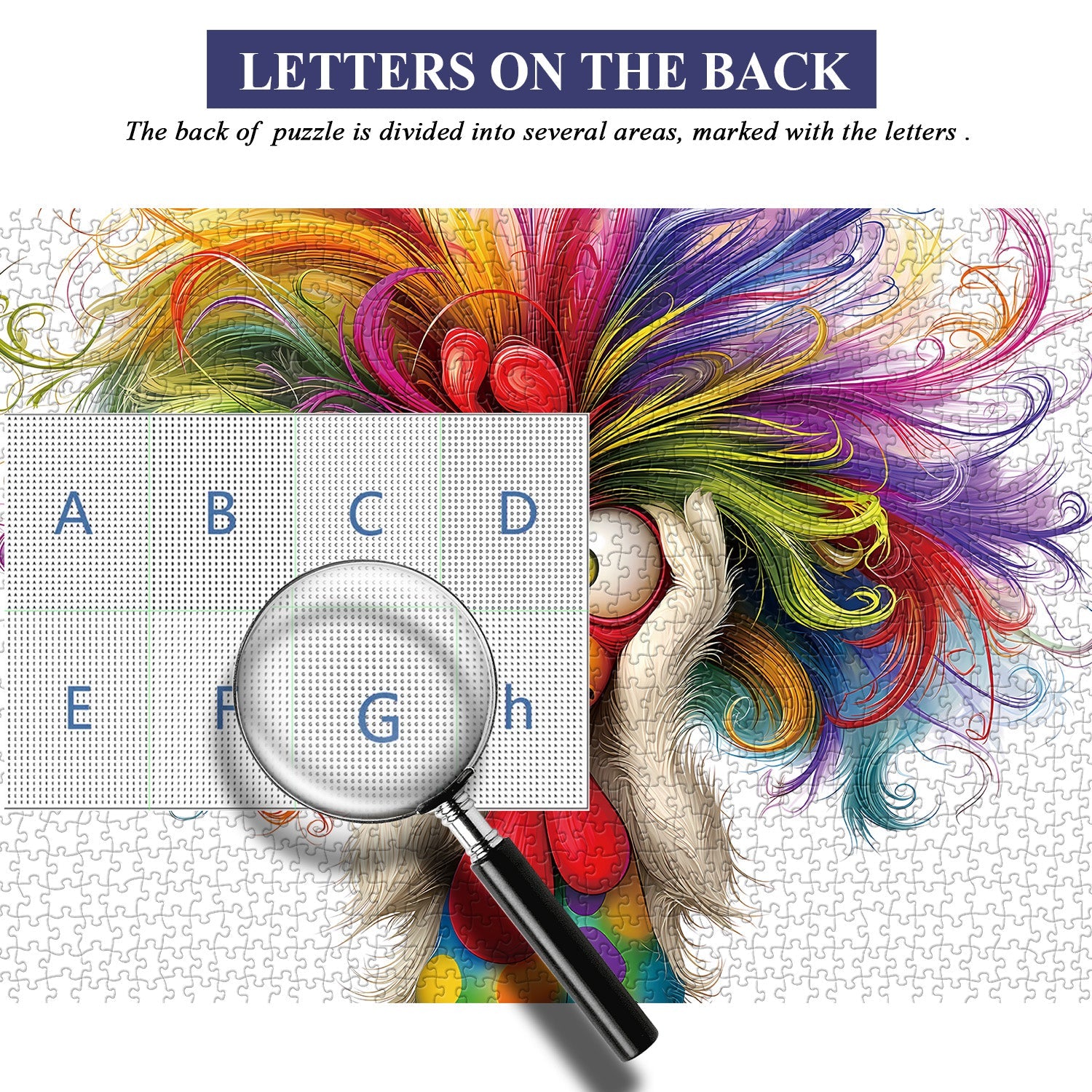 Arc-en-ciel - Coq fantaisiste à plumes: Un coq avec un panache de plumes aux couleurs extravagantes de l'arc-en-ciel, comportant des tourbillons de rouge, d'orange, de jaune, de vert, de bleu et de violet, sert de point focal, dégageant un charme ludique et excentrique.